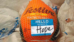 Frozen turkeys, hams, cereal, canned yams, bagged or boxed stuffing, and cranberry sauce are the most-needed items right now. Bagged or canned beans, soup, bags of rice, boxed or canned potatoes, gravy packets, dessert mixes, canned fruit, canned vegetables, and boxed macaroni & cheese are also in high demand.