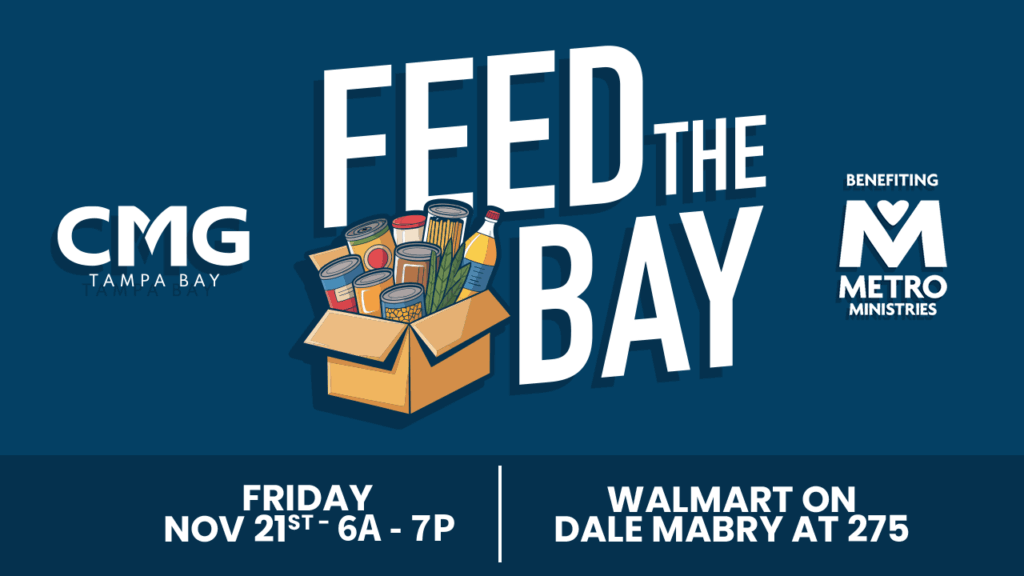 Help us fight food insecurity this Holiday Season. Join Metropolitan Ministries and Cox Media Group on Friday, November 21st from 6am-7pm, at the Walmart on Dale Mabry, just off 275, as we Feed The Bay. Drop off food to assist our neighbors in need in Tampa Bay.