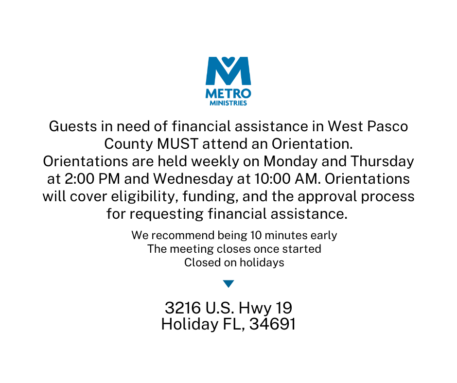 If you have any questions, please email intakedocs@metromin.org or call (813) 209-1222 in Hillsborough and (727) 756-1956 in Pasco.