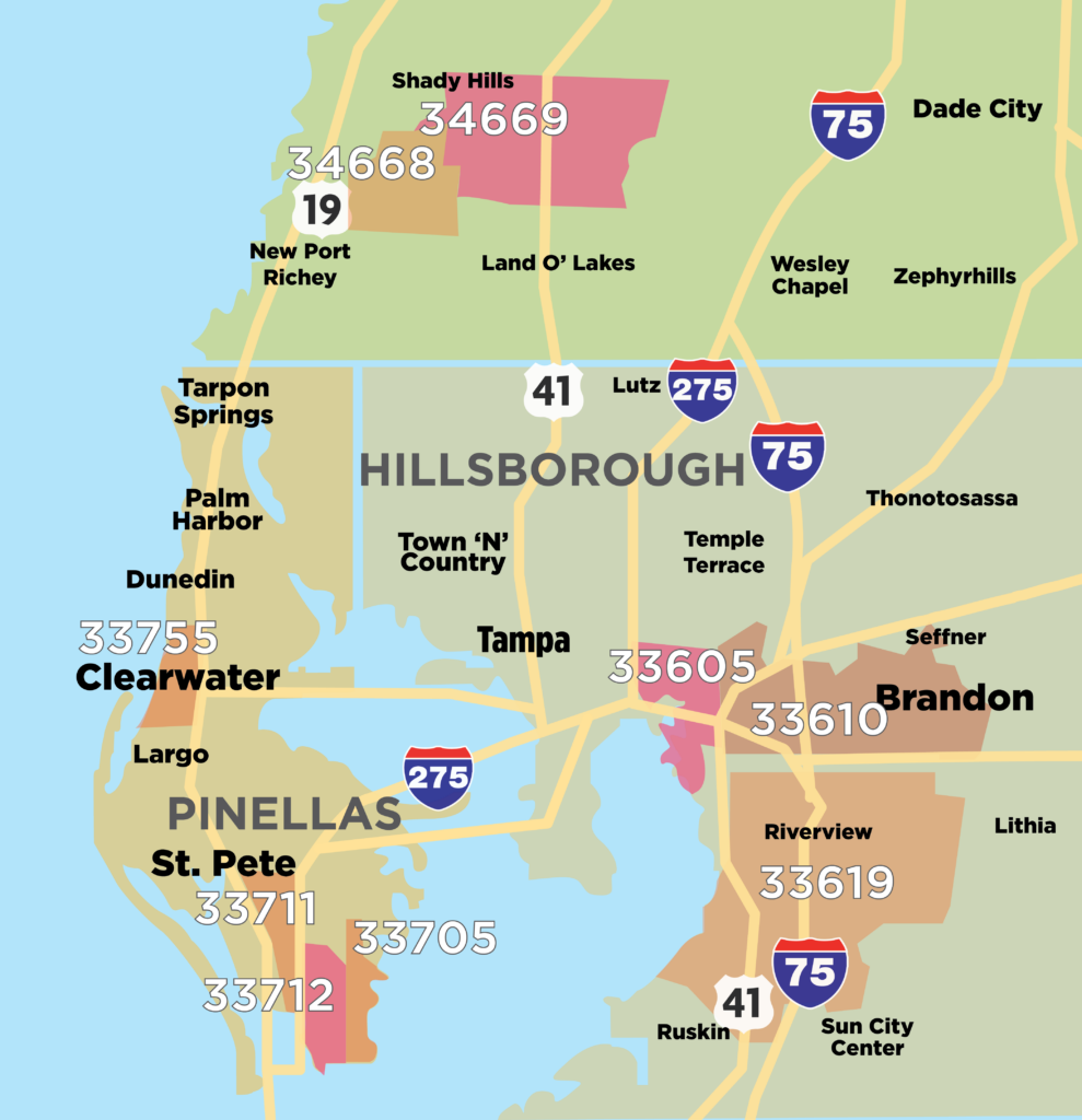 - Hillsborough: 33610, 33619, 33605